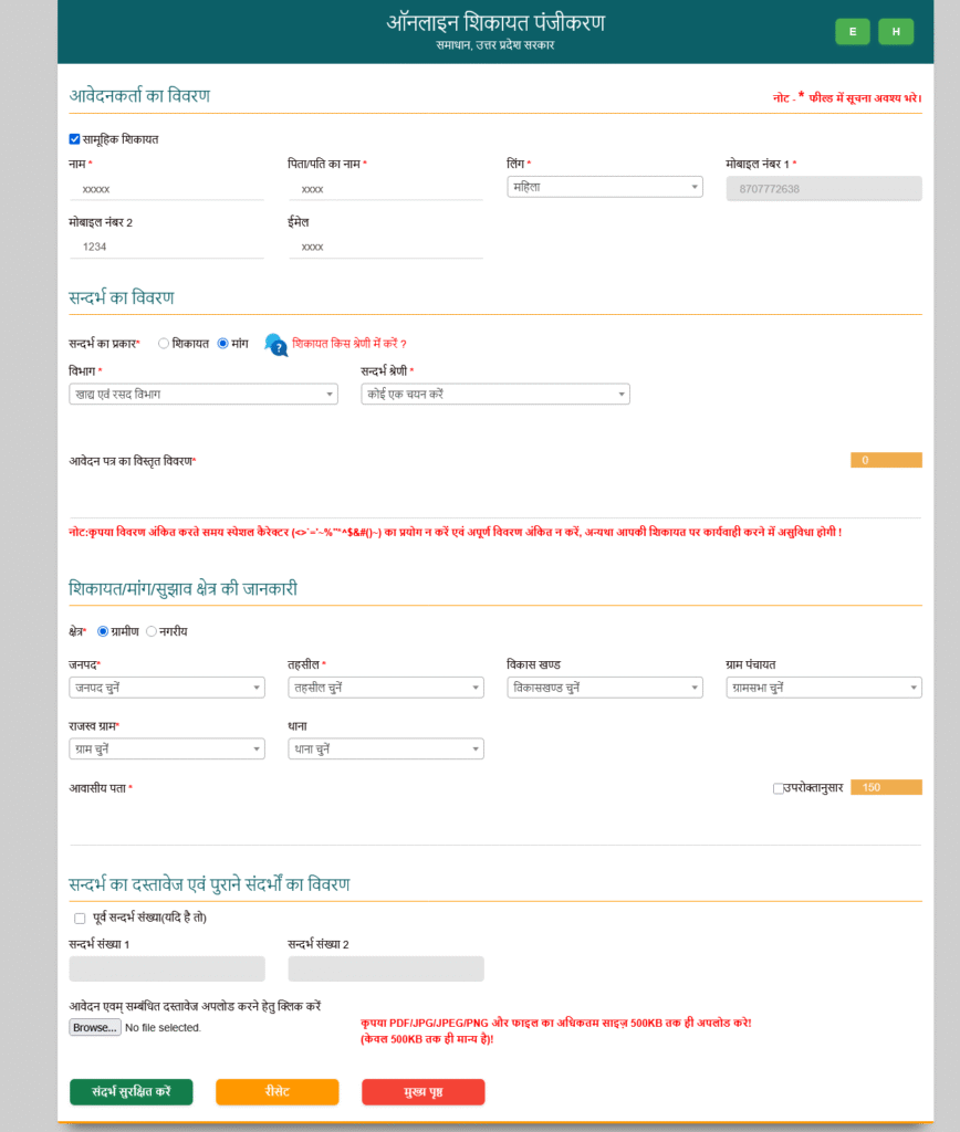 • विषय: “राशन कार्ड / खाद्यान्न वितरण से संबंधित शिकायत”